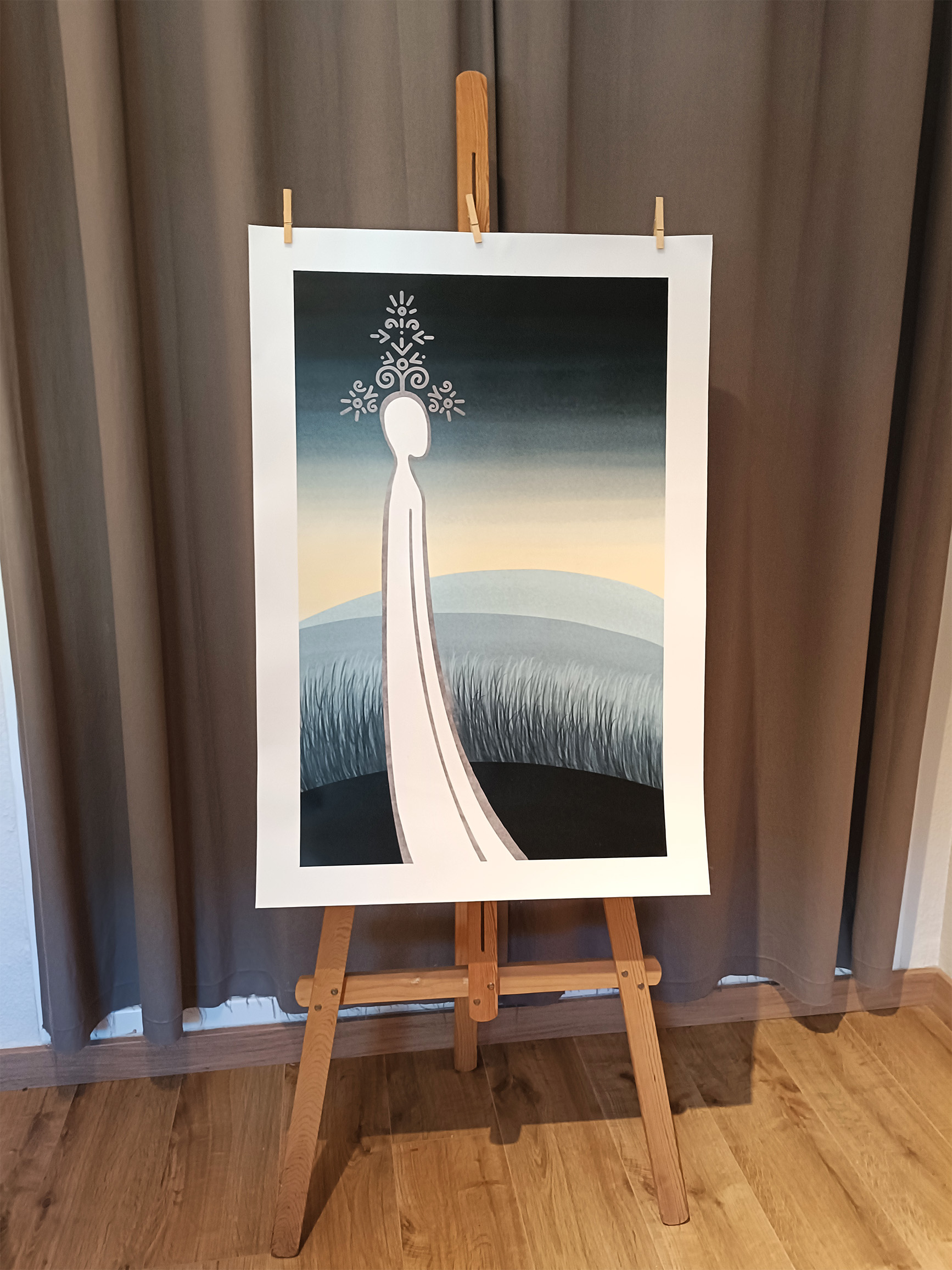 54 x 85 cm plus une marge blanche assez large pour pouvoir l’adapter à la taille de votre cadre.